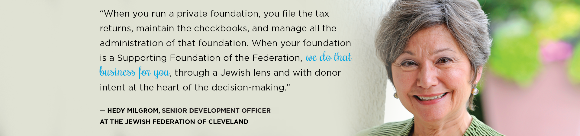 With a current or future gift of cash, securities or other property, worth a minimum of $1 million, you can create a Supporting Foundation of the Jewish Federation of Cleveland.