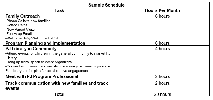 - Bring a Jewish element to PJ Library family encounters (either by self or with aid of other Jewish professionals in community).