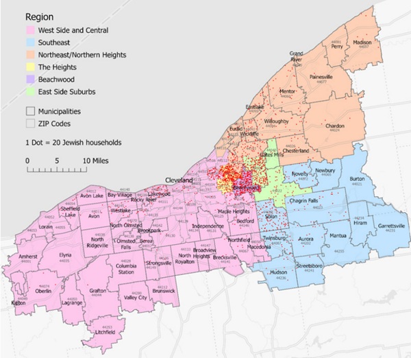 The study divides Jewish Cleveland into six regions, each with its own character: